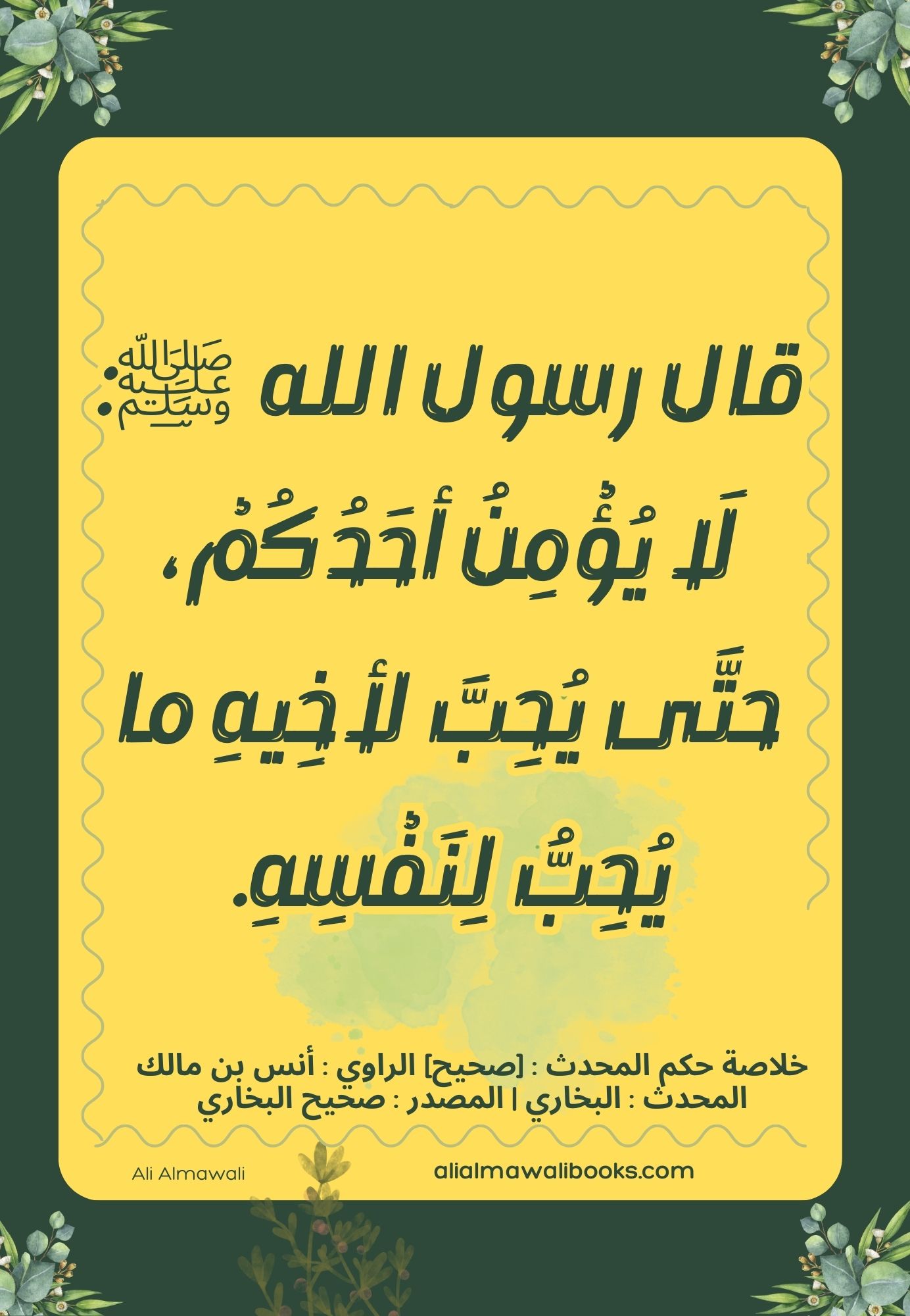( لا يؤمن أحدكم حتى يحب لأخيه ما يحب لنفسه ) ، رواه البخاري ومسلم .